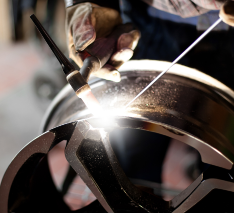 Wheels that are cracked, chipped or have pieces missing, need to be welded and ground before being heated and spun. This technique is only used when the rim of the wheel is damaged, but the face is unspoiled.